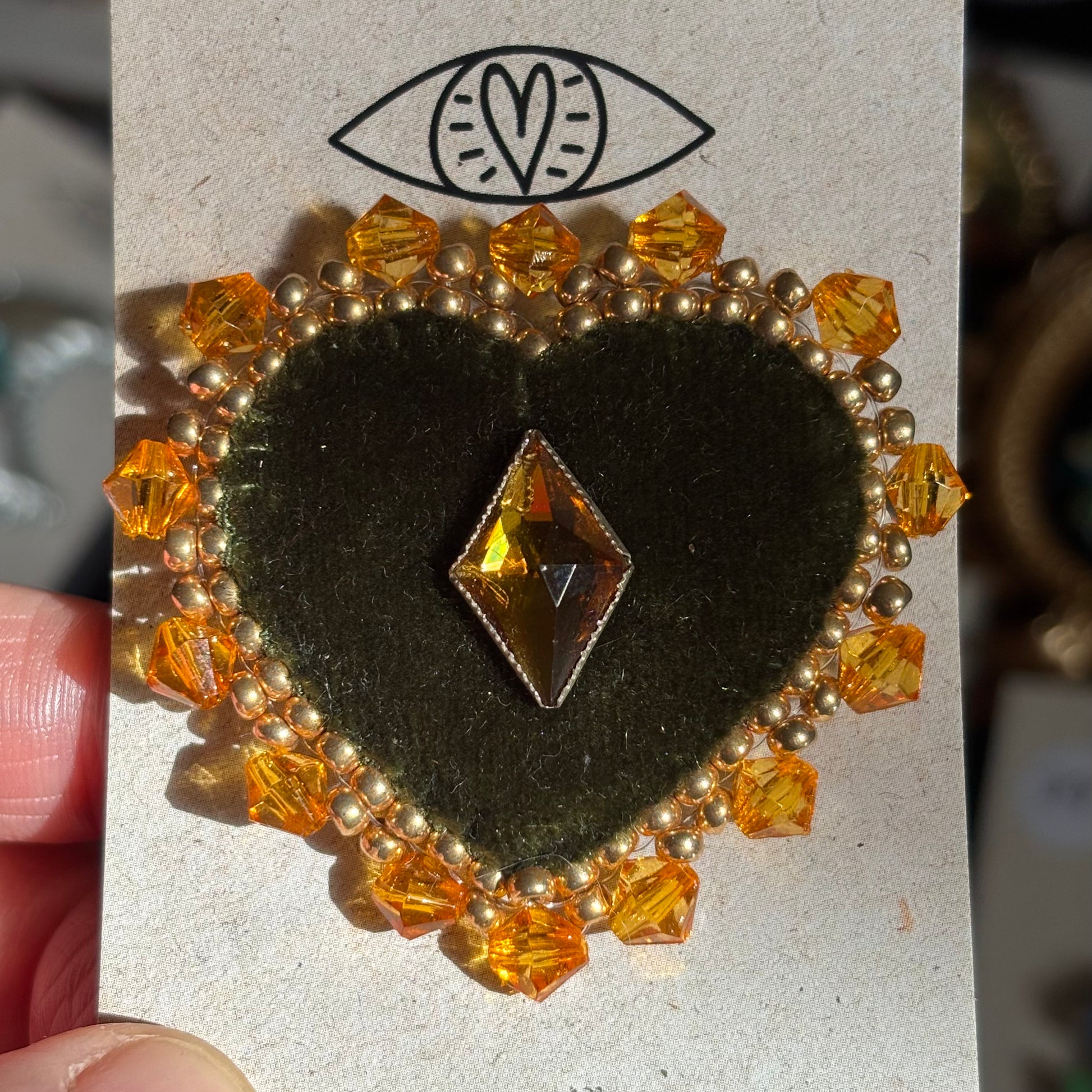 Broche Chatoyante - Coeur Forêt Vert Simple