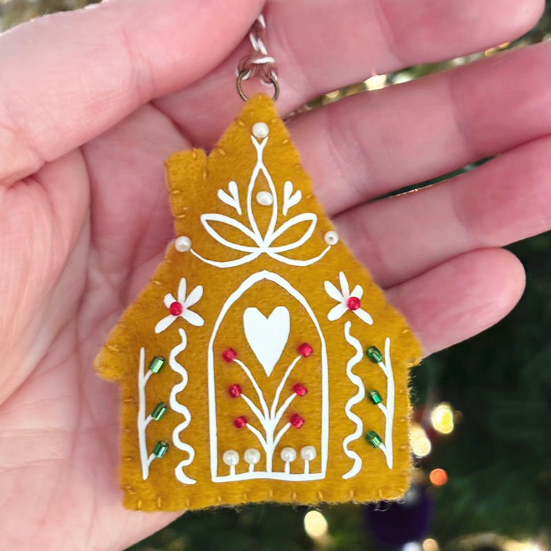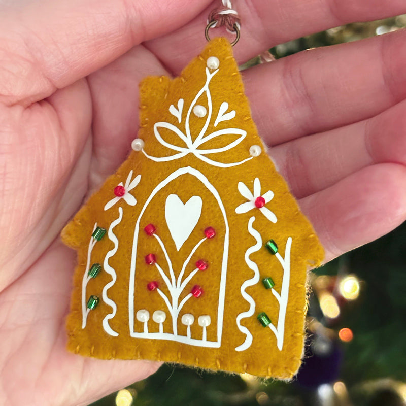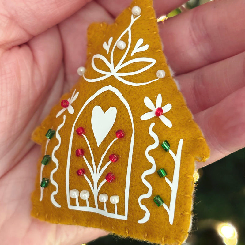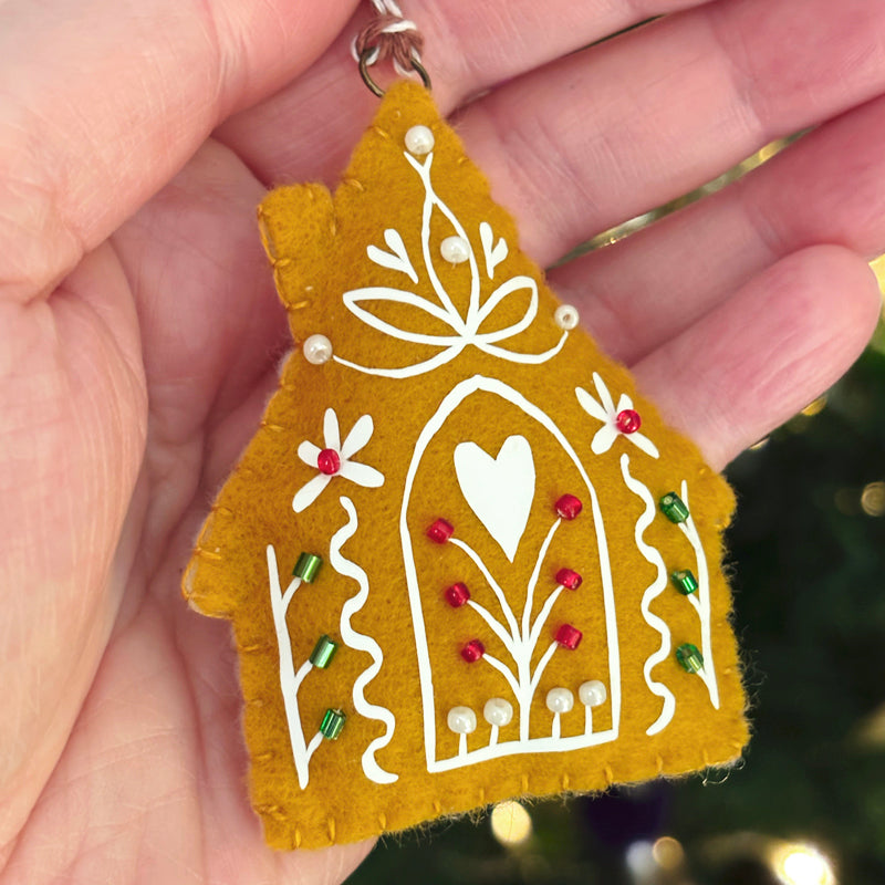 Suspension faite main. Feutrine en acrylique. Ouate de rembourrage en polyester recyclé. Foil phosphorescent. Perles